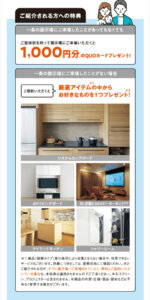 ✔ 展示場予約+来場:1,000円分(条件付き特典)